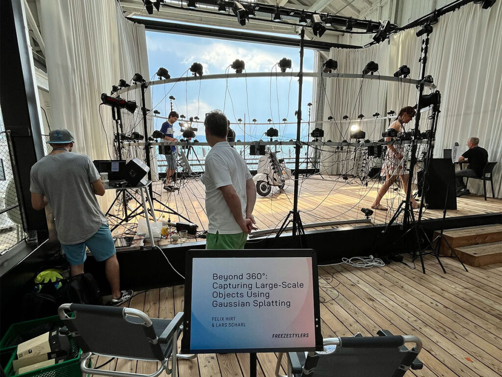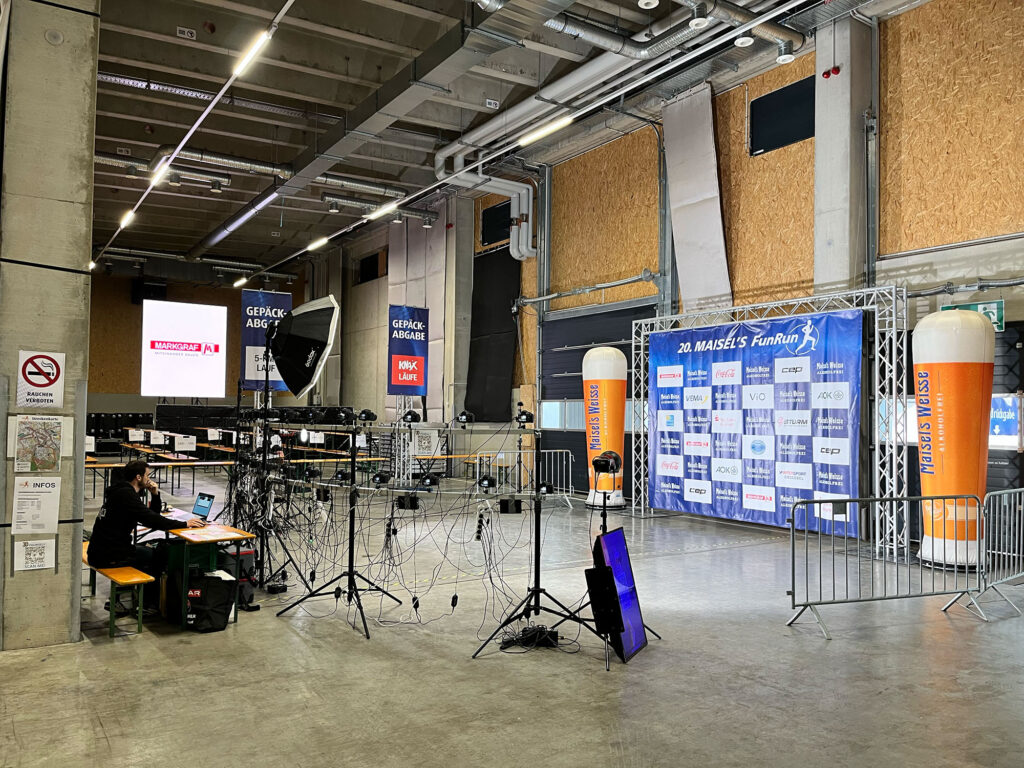 Unsere selbst entwickelte Event-Pipeline stellt für uns ein wichtiges weiteres Standbein dar und ermöglicht es uns Shootings mit dem Multikamerasystem als richtiges Happening anzubieten – dabei ist die Anzahl an Kameras, der Platzbedarf des Setups und der zeitliche Rahmen der Shootings frei wählbar. Wir können eine beliebige Anzahl an Kameras aufbauen und damit Motive von einer Person bis hin zu größeren Gruppen aufnehmen. Unser Rekord liegt bisher bei 35 Personen (tschechisches Kletter-Nationalteam 2024) und wir sind heiß darauf diese Marke noch weiter zu steigern. Neben den Ergebnissen ist auch das Shooting an sich ein echtes Erlebnis – wann hat man sonst schonmal die Gelegenheit, sich wie ein Schauspieler in Hollywood zu fühlen und ganze Kamerawände auf sich gerichtet zu sehen.